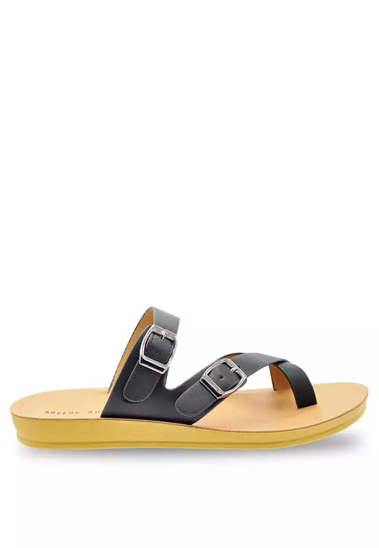 Buckle Toe Ring Black Sandals