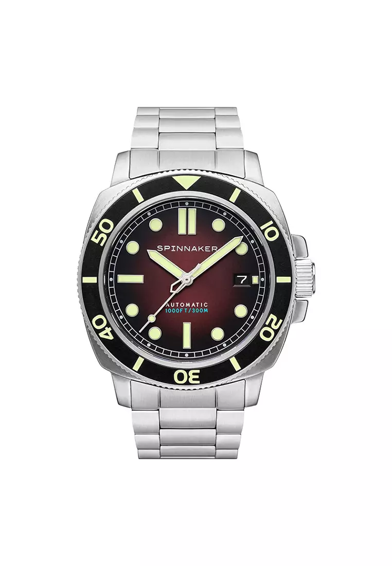 Jam Tangan Pria Spinnaker Hull Diver SP-5088-33 Automatic Ombre Red Dial Stainless Steel Strap