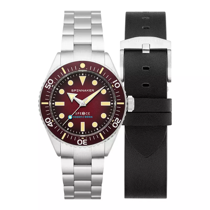 Jam Tangan Pria Spinnaker Spence 300 SP-5097-55 Crimson Red Dial Stainless Steel Strap + Extra Strap