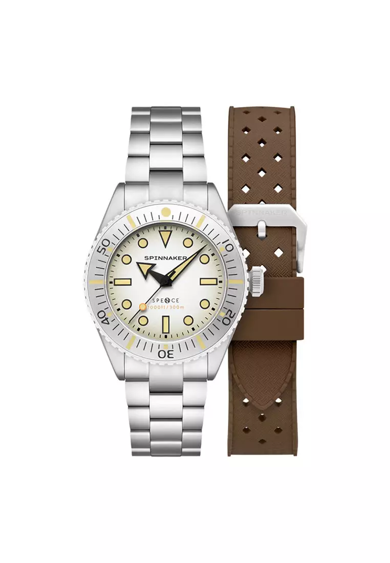 Jam Tangan Pria Spinnaker Spence 300 SP-5097-66 Automatic Off White Dial Stainless Steel Strap + Extra Strap