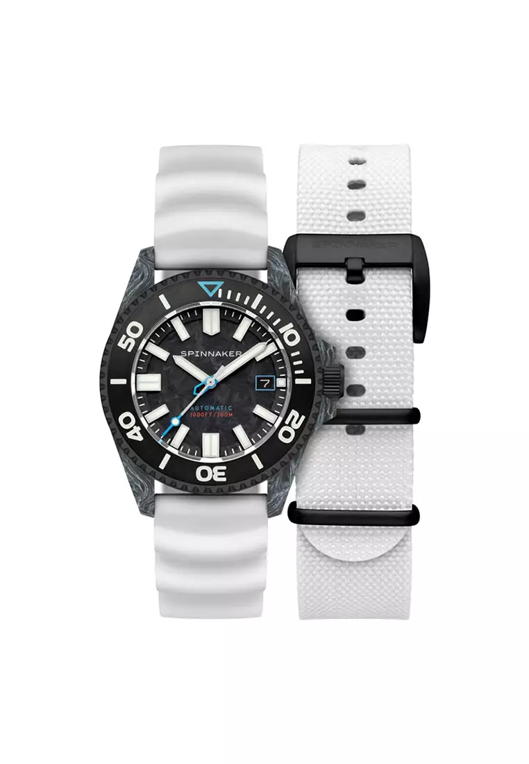 Jam Tangan Pria Spinnaker Tesei SP-5143-02 Forged Carbon Automatic Black Frost White Silicone Strap Limited Edition