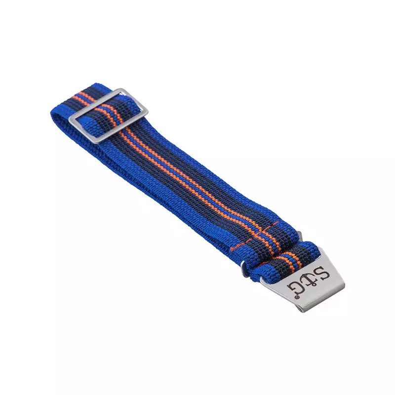 Tali / Strap Jam Tangan Strap Guy MN-SAMUDRA-18A Blue Nylon Orange-Black Stripes Silver Folding