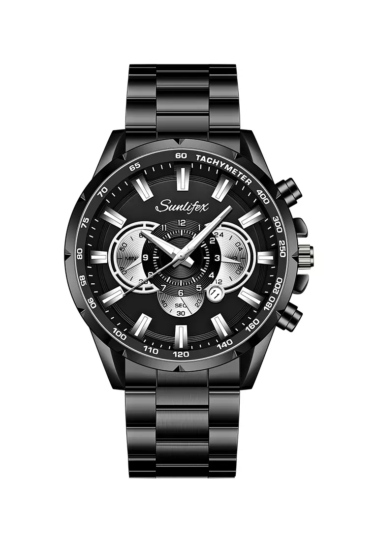 SunlifexJam Tangan Pria 3351 Kalender Kuarsa Jam Tangan Cowok Santai Tali Stainless Steel Original allblack350000.00161000.00