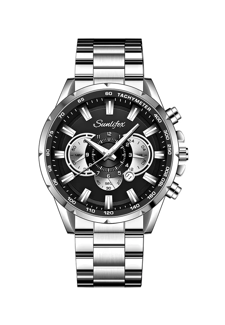 SunlifexJam Tangan Pria 3351 Kalender Kuarsa Jam Tangan Cowok Santai Tali Stainless Steel Original silverblack350000.00161000.00