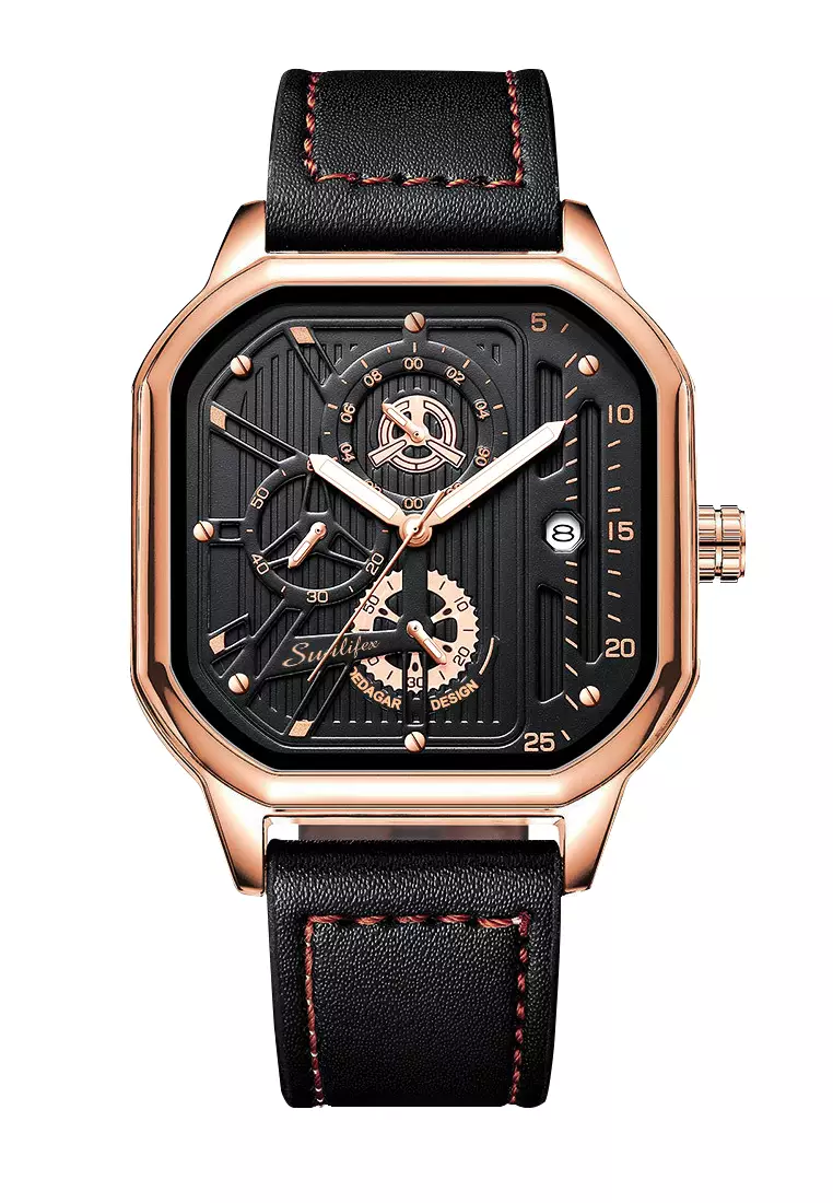 SunlifexJam Tangan Pria 9095 Kuarsa Olahraga Kasual Tali Kulit Pria Jam Tangan Cowok rose black680000.00122000.00