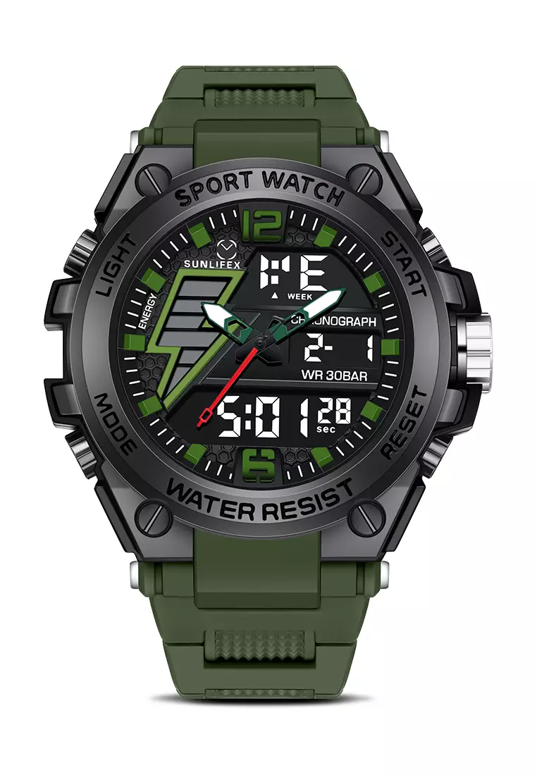 SunlifexJam Tangan Pria Analog&Digital Multifungsi Tali Silikon Anti Air Jam Tangan Cowok greenblack890000.00126000.00