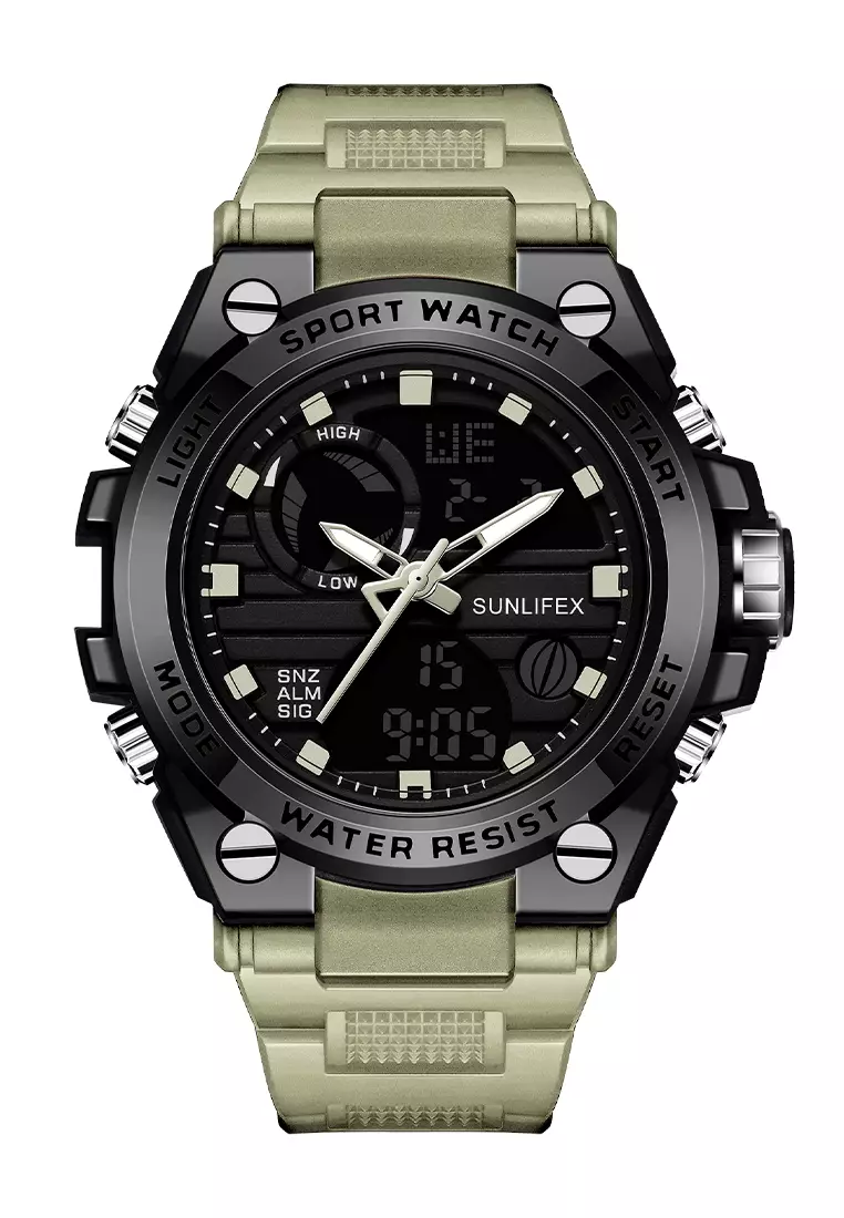 SunlifexJam Tangan Pria Analog&Digital Tali Silicone Original Luminous Display Anti Air Jam Tangan Cowok KHAKIBLACK480000.00131000.00