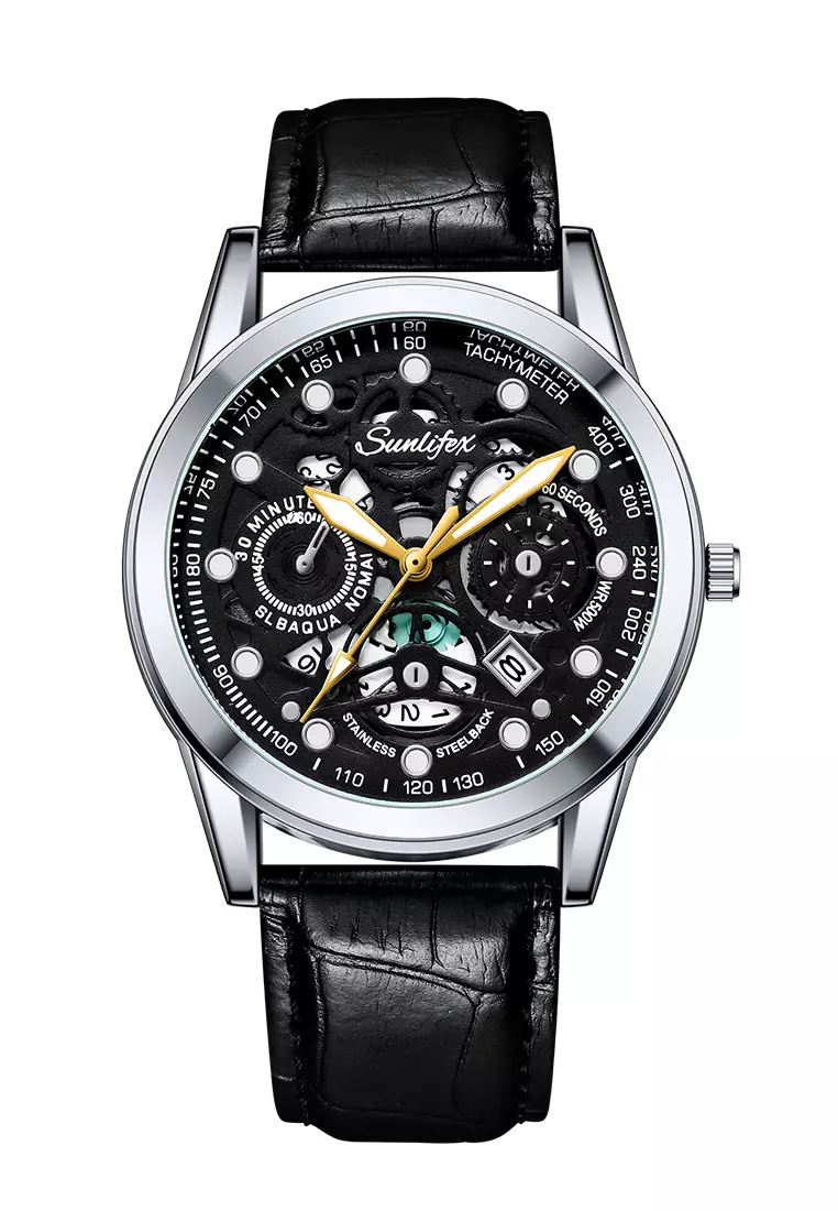 SunlifexJam Tangan Pria Dial Berongga Anti Air Kuarsa Tali Kulit Jam Pria Original Santai Mode Jam Tangan Cowok 7001 all black480000.0079000.00