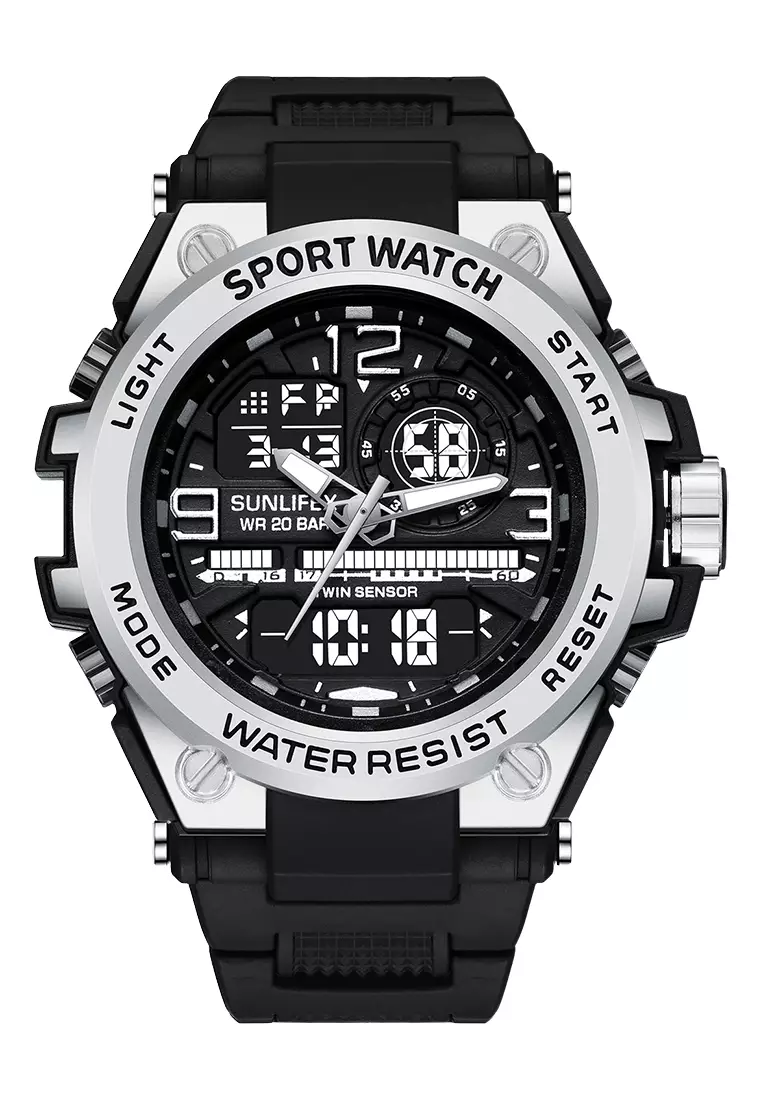 SunlifexJam Tangan Pria Digital&Analog Olahraga Multifungsi Tali Silikon Jam Tangan Cowok D003 black silver890000.00160000.00