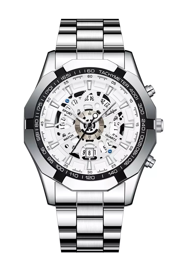 SunlifexJam Tangan Pria Original Calendar Luxury Bisnis Tali Stainless Steel Jam Tangan Cowok 9096 silver white780000.00137000.00