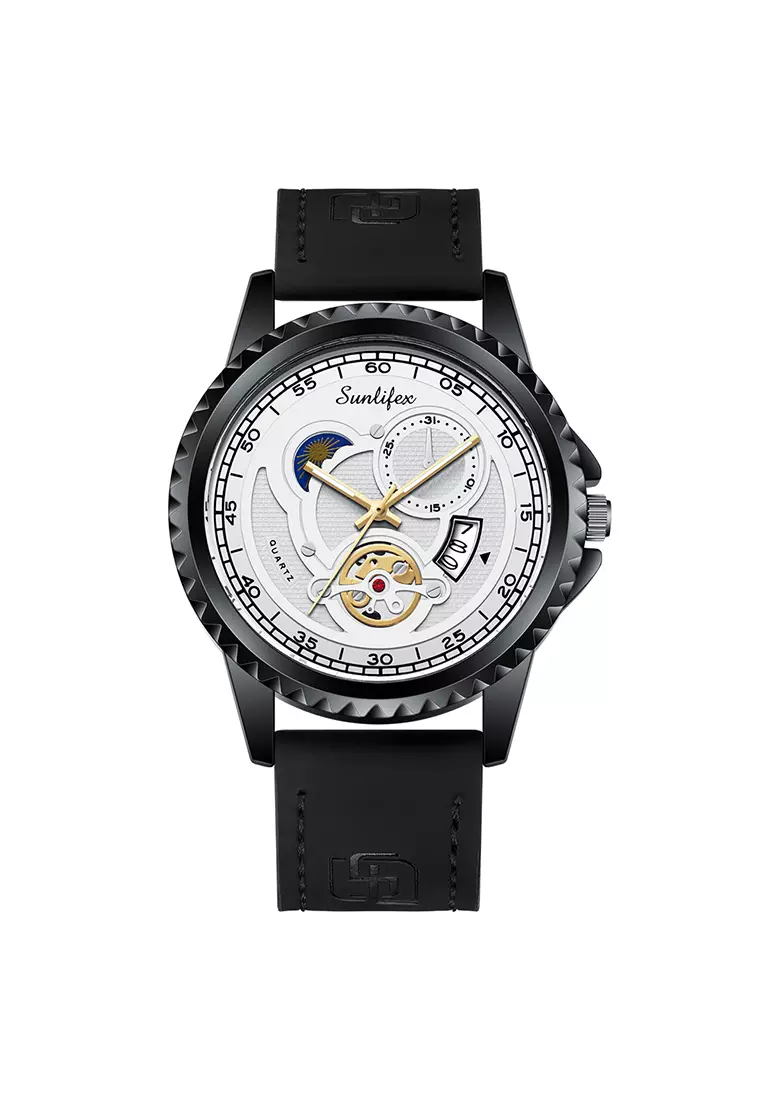 SunlifexJam Tangan Pria Quartz Tanggal Luminous Kuarsa Mode Tali Kulit Jam Tangan Cowok 9114 blackwhite450000.0064000.00