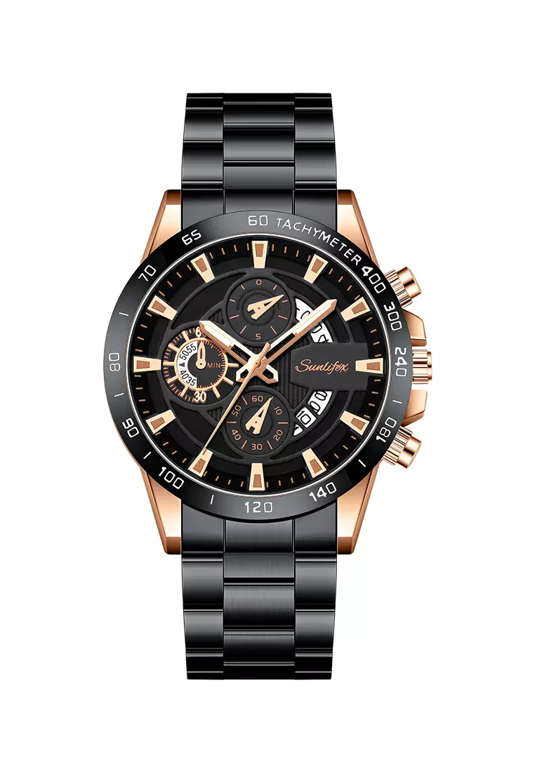 SunlifexJam Tangan Pria SL3321 Quartz Kalender Bercahaya Olahraga Tali Stainless Steel Jam Tangan Cowok blackgold380000.00161000.00