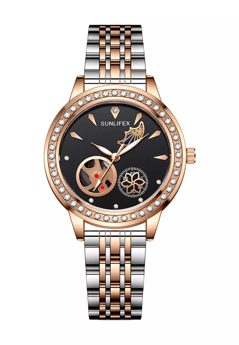 SunlifexJam Tangan Wanita E055 Korea Mewah Kuarsa Bercahaya Tali Paduan Jam Tangan Cewek Original black390000.00142000.00