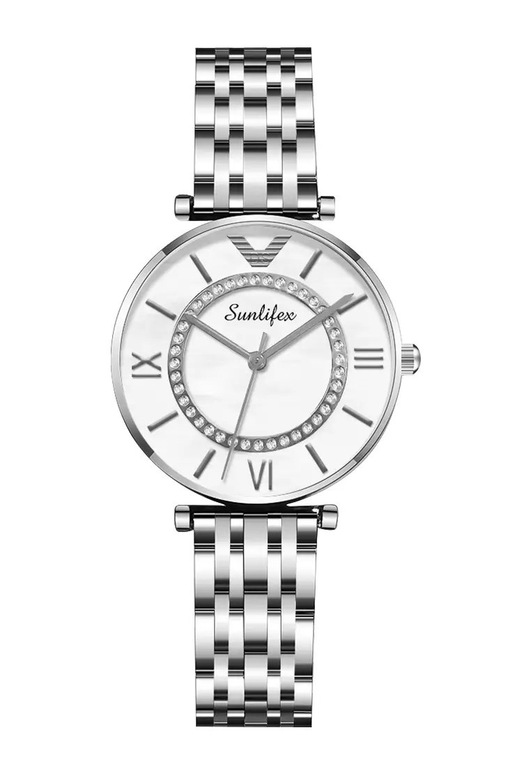 SunlifexJam Tangan Wanita Kuarsa Tali Stainless Steel Berlian Anggun Santai Jam Tangan Cewek silver white520000.0089000.00
