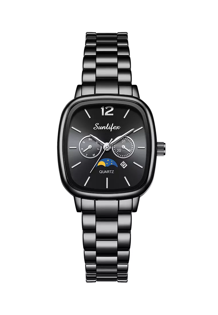 SunlifexJam Tangan Wanita Original Kalender Kasual Korean Style Tali Paduan Jam Tangan Cewek B006 allblack380000.00160000.00