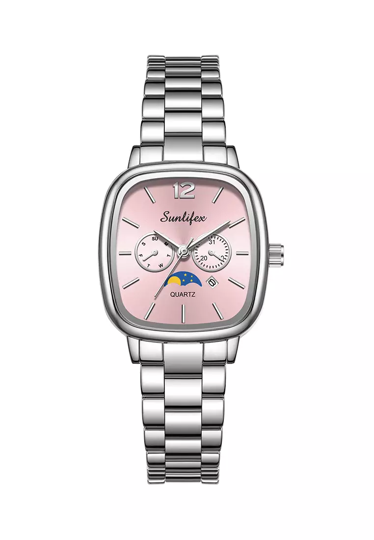 SunlifexJam Tangan Wanita Original Kalender Kasual Korean Style Tali Paduan Jam Tangan Cewek B006 silverpink380000.00160000.00