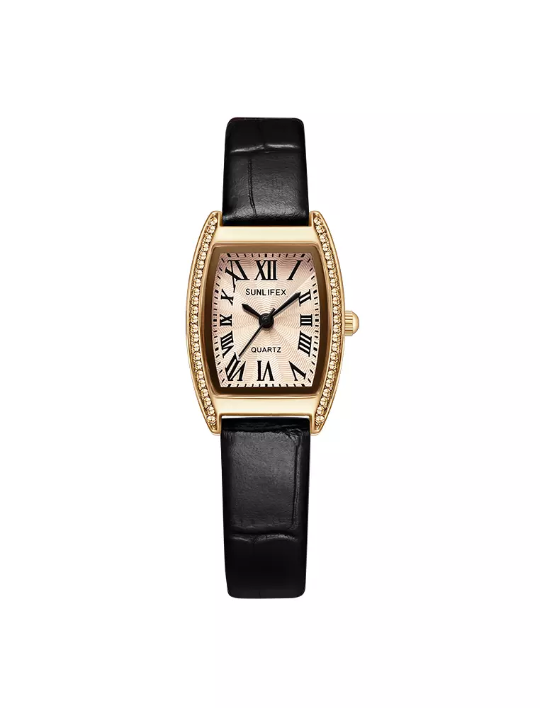 SunlifexJam Tangan Wanita Tonneau-shaped Diamond Dial Tali Kulit Mode Jam Tangan Cewek black white680000.00121000.00