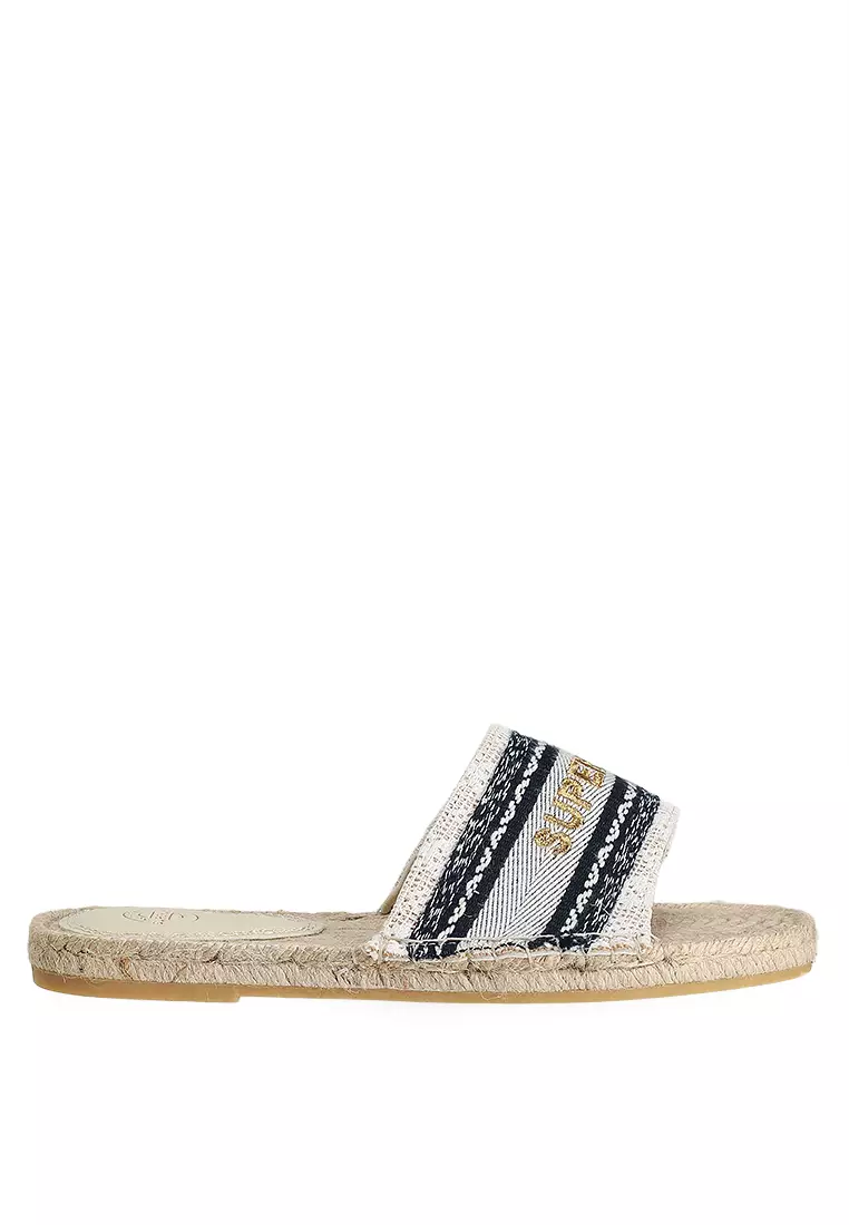 Canvas Espadrille Overlay Slides