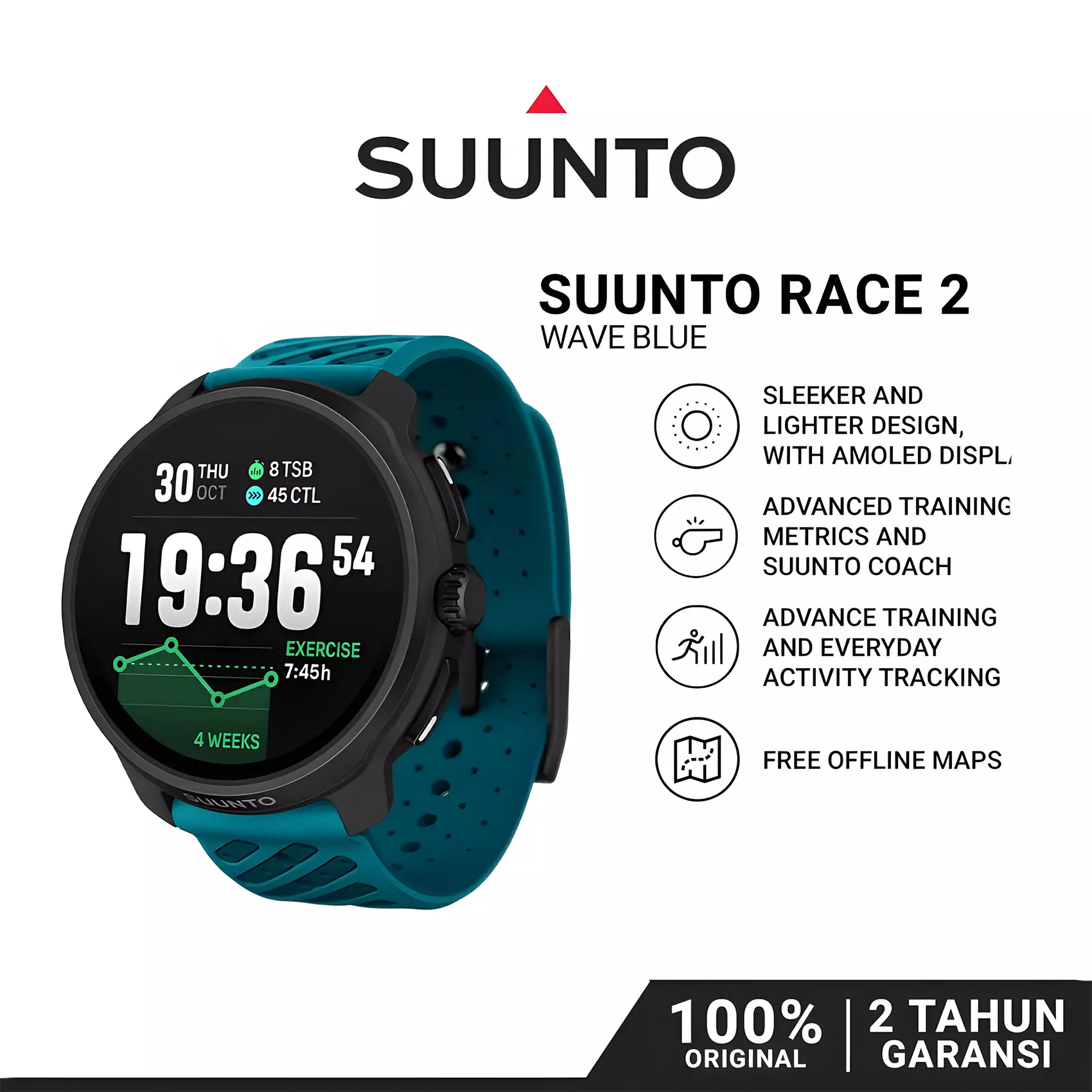SuuntoSuunto Race 2 - Jam Tangan Unisex - Dark Brushed Stainless Steel Striped Two-Tone Wave Blue Silicone Strap - SS05124200022550000.0018040000.00