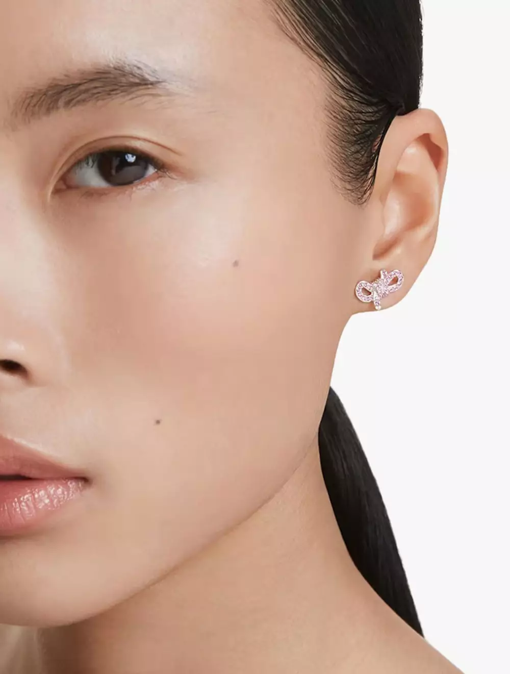 Lifelong Bow Stud Earrings, Bow, Pink, Rhodium Plated