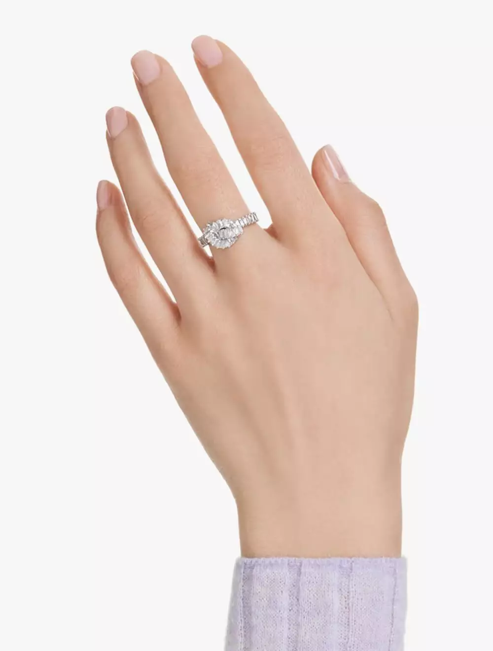 Matrix ring, Baguette cut, Knot, White, Rhodium plated