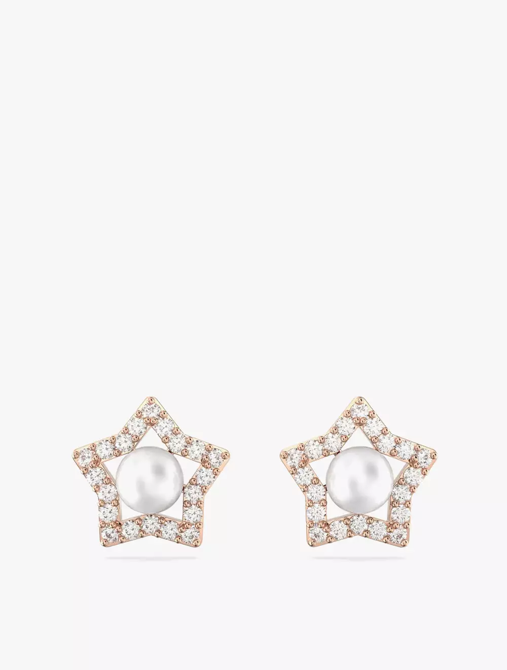 Stella Stud Earrings, Round Cut, Star, White, Rose Gold-Tone Plated - White