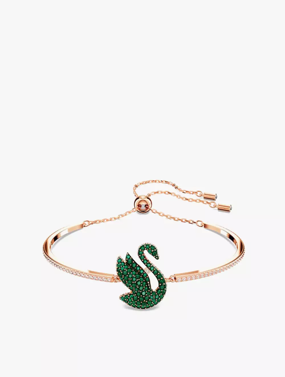Swarovski Iconic Swan Bangle, Swan, Green, Rose Gold-Tone Plated - M - Green