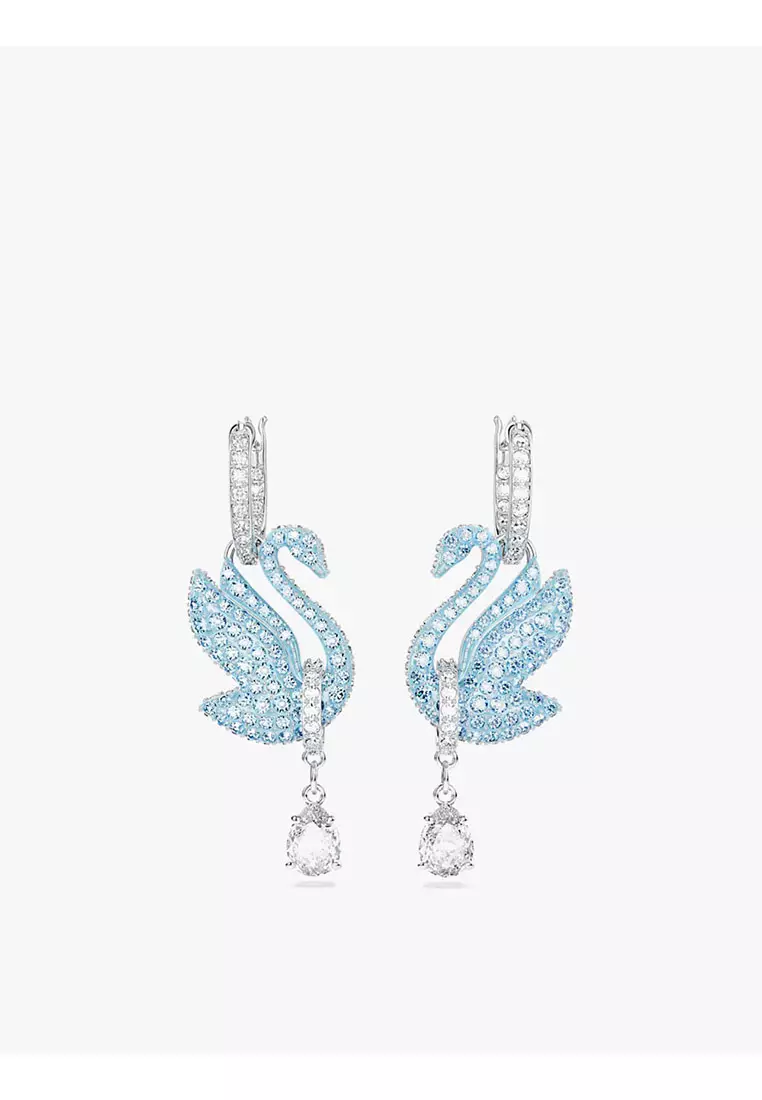 Swarovski Iconic Swan Drop Earrings, Swan, Blue, Rhodium Plated - Blue