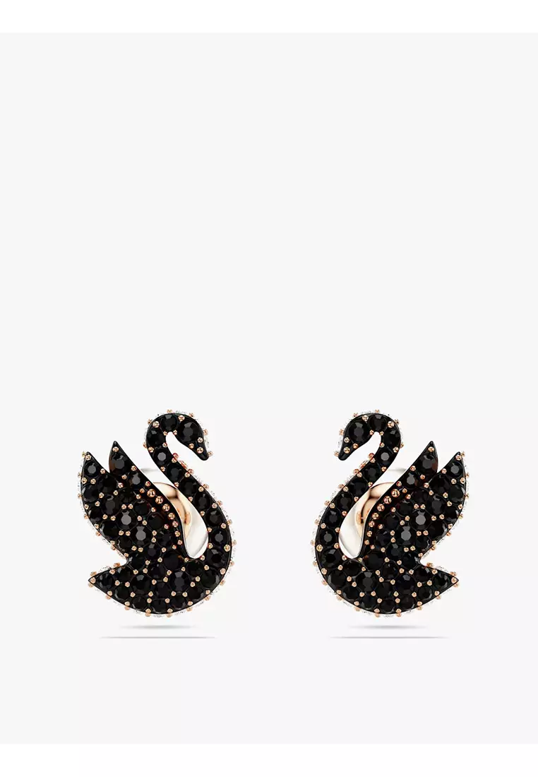 Swarovski Swan Stud Earrings, Swan, Black, Rose Gold-Tone Plated - Black