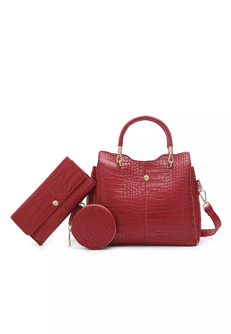 Women's 3-in-1 Handbag with Pouch & Purse (3-in-1 Tas Wanita & Dompet Wanita) - Merah