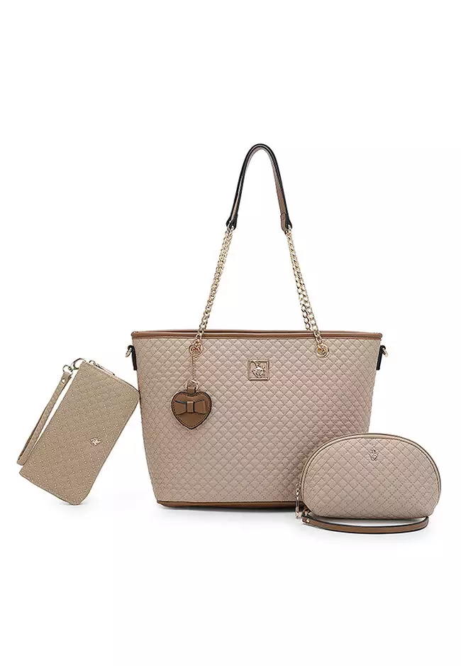 Swiss PoloWomen's 3 in 1 Quilted Bag - Tote Bag / Wallet / Pouch (Tas 3 in 1 - Tas Jinjing / Dompet Wanita / Kantong Wanita) - Krem3199000.001439550.00