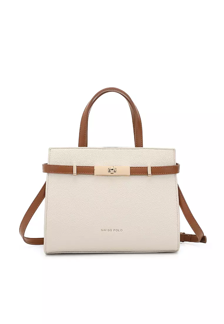 Women's Top Handle Bag / Sling Bag / Crossbody Bag / Shoulder Bag (Tas Tangan Wanita / Tas Selempang Wanita / Tas Bahu Wanita) - Krem / Cokelat