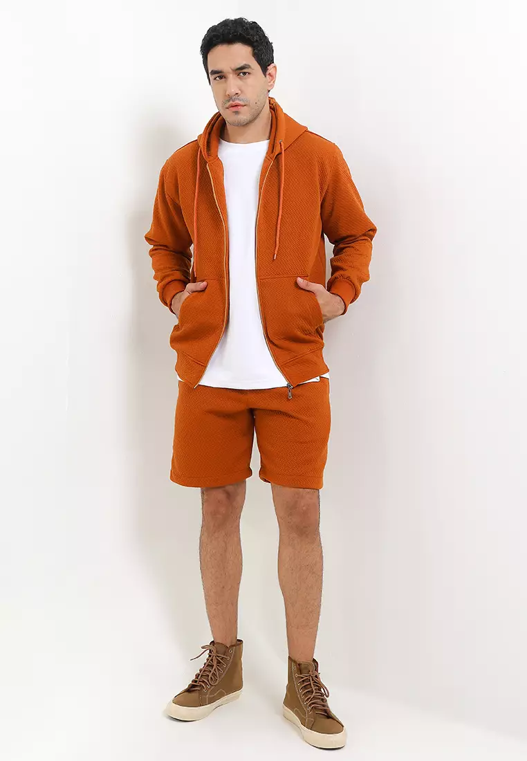 SYZLOSYZLO Setelan Hoodie Zipper Maze Cotton Fleece Atasan Jaket Hoodie Zipper Dan Bawahan Boardshort 1 Stel - Camel445000.00254670.00