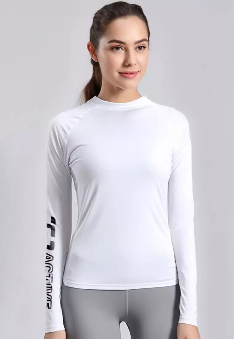 LSD14 baju lari wanita lengan panjang jersey stretch "td active outline" putih