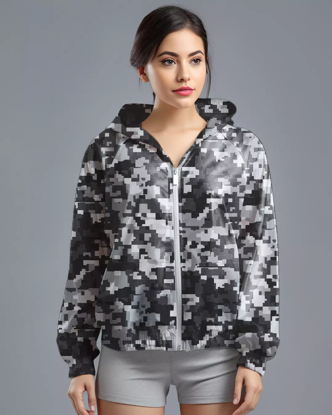 LSD72 Jaket Lari Olahraga Wanita Parasut motif "pixel camo" hitam abu