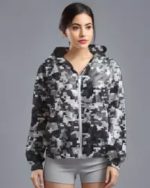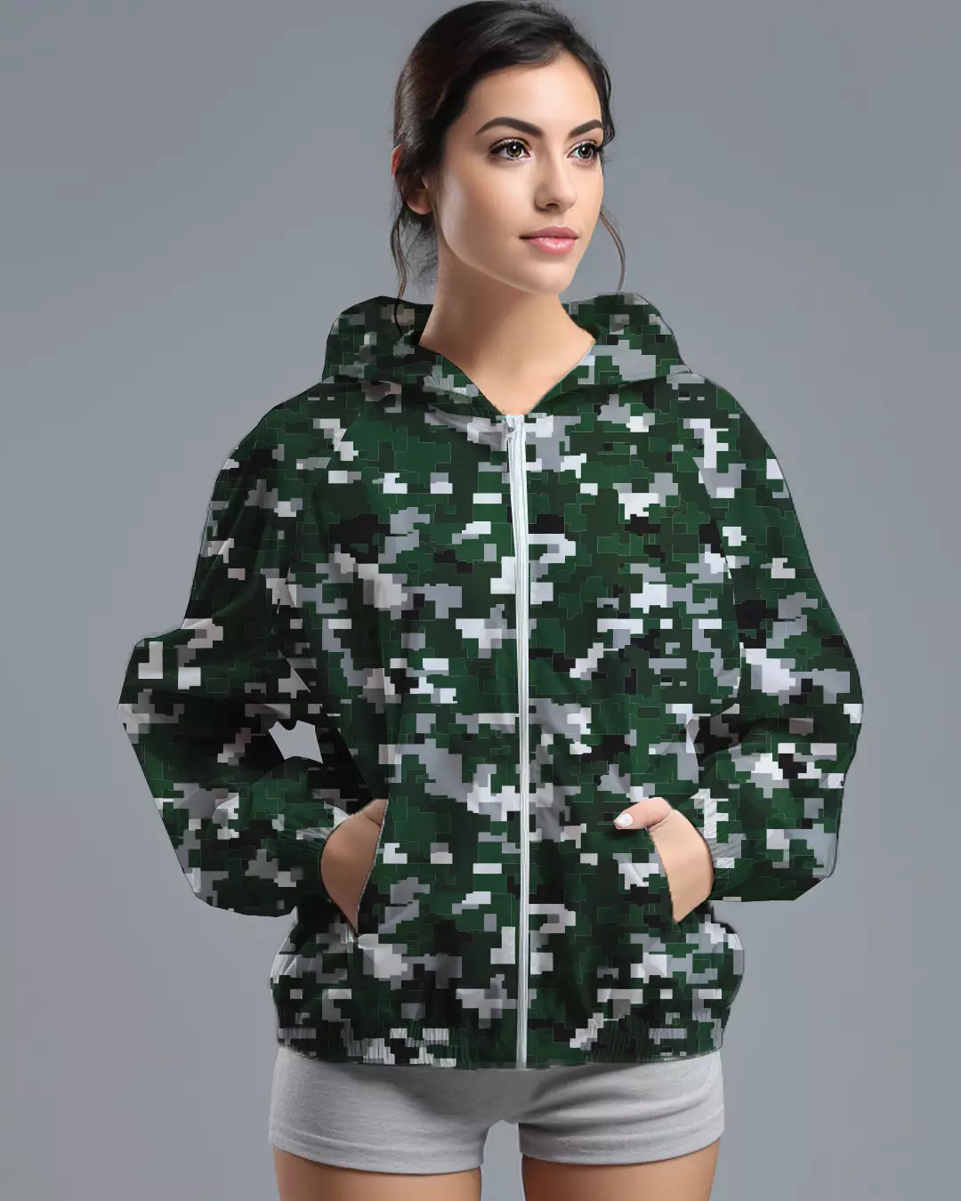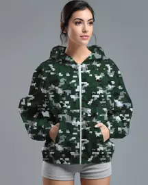 LSD73 Jaket Lari Olahraga Wanita Parasut motif "pixel camo" hijau