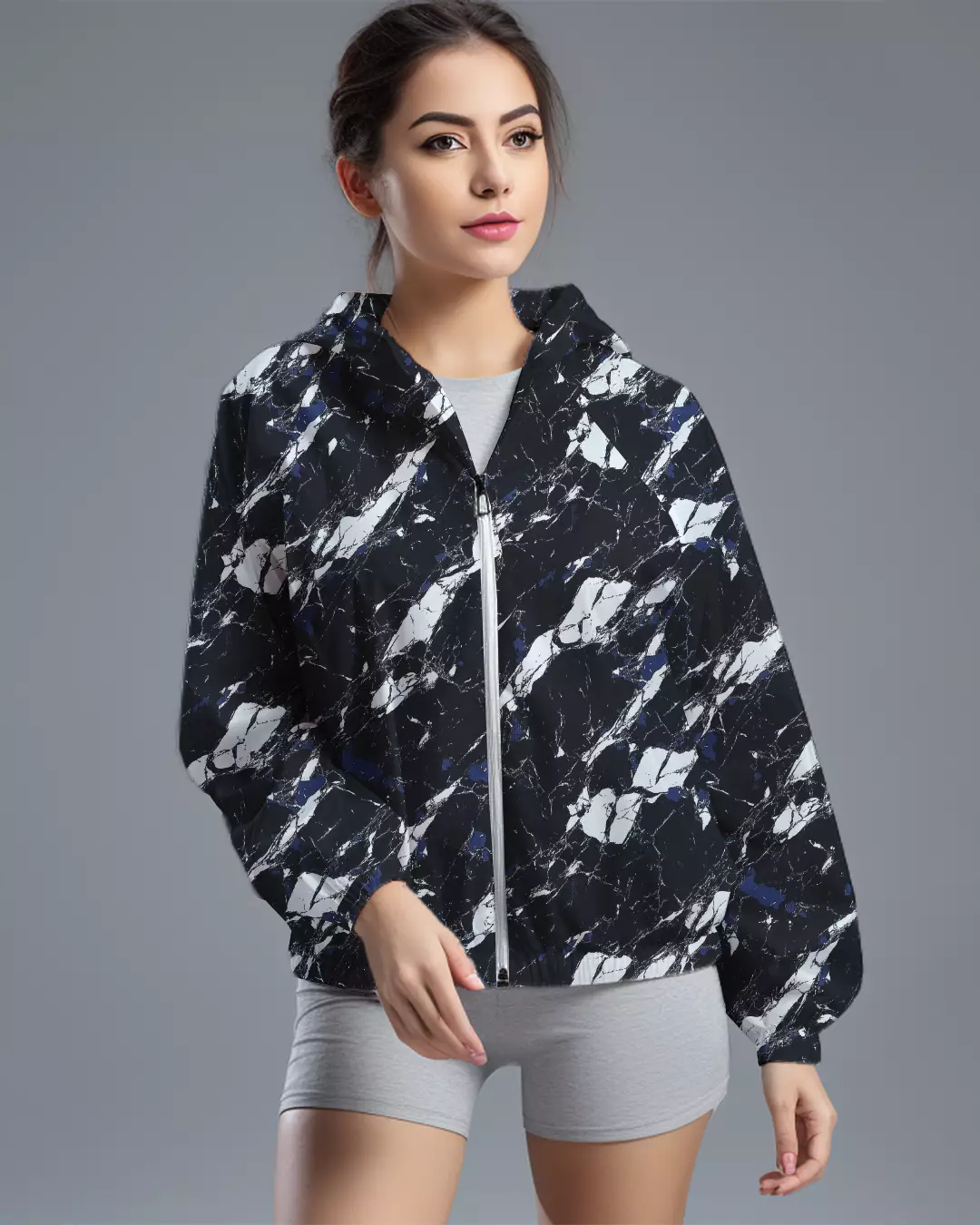 LSD75 Jaket Lari Olahraga Wanita Parasut motif "marble" hitam