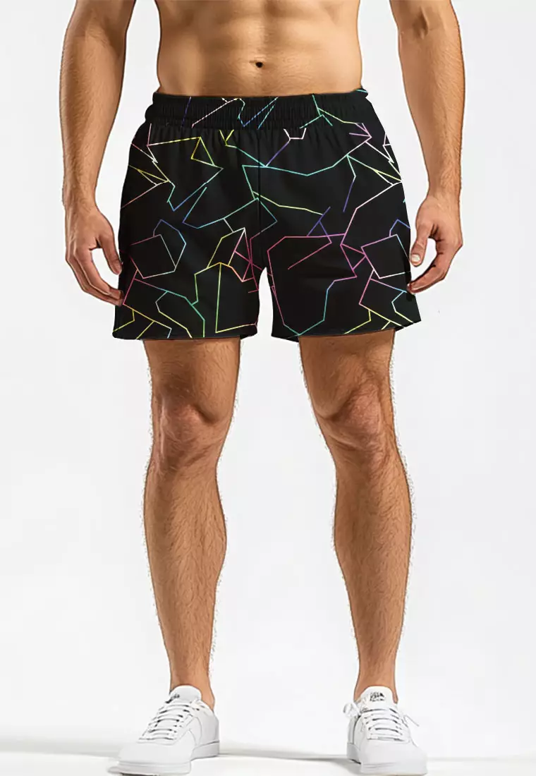 MB096 Celana Pendek Olahraga Pria Motif 4way Stretch "geo hitam"
