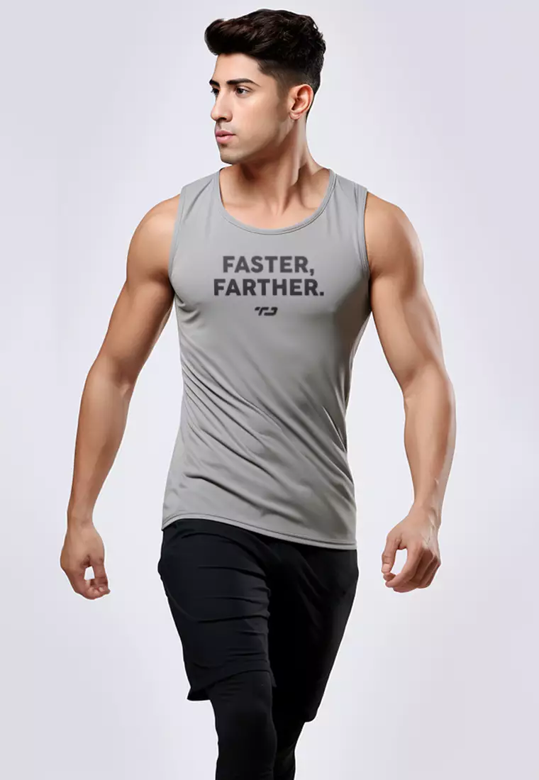 MSA45 Kaos Lari Pria Singlet Drifit "faster farther" abu muda