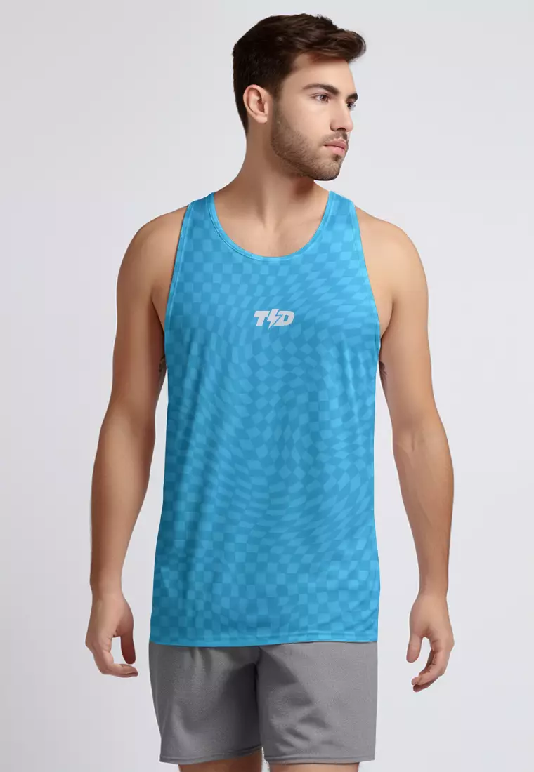 MSA89 Kaos Kutung Gym Running Lari Olahraga "checkerboard" biru muda - airdrylite