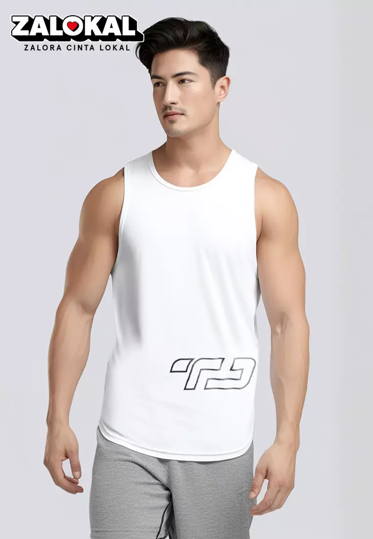 Td Active MS172 Sleevless Kutung Running Jersey Baju Lari Logo Outline Putih