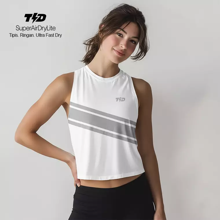 TdActive Crop Tank Top Lari Running Putih Abu Muda SuperAirDryLite LSF25