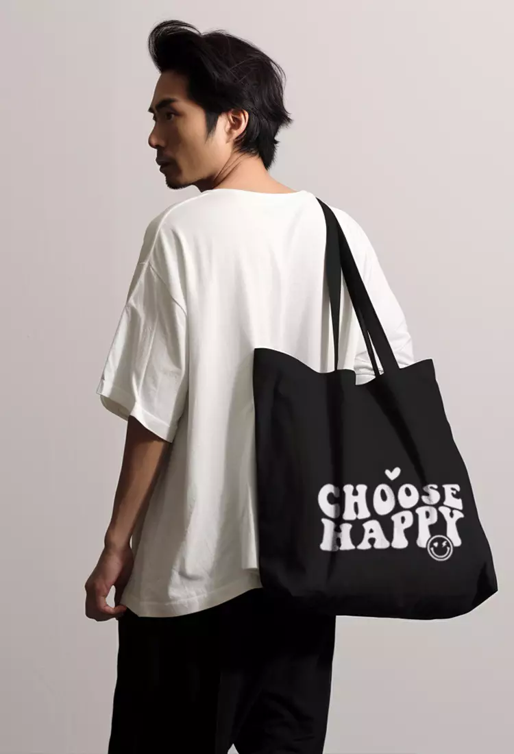 AMC91 totebag aesthetic kanvas pria wanita hitam black choose happy