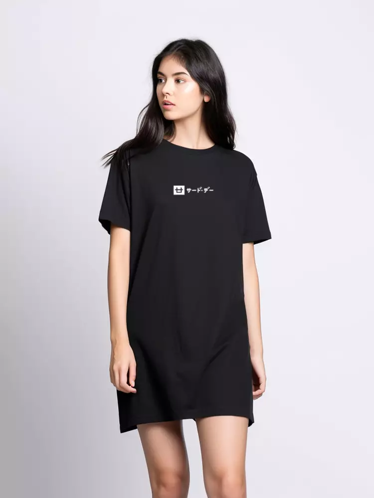 LTC01 Third Day Dress Kaos Casual Logo Katakana Long Dress Ladies
