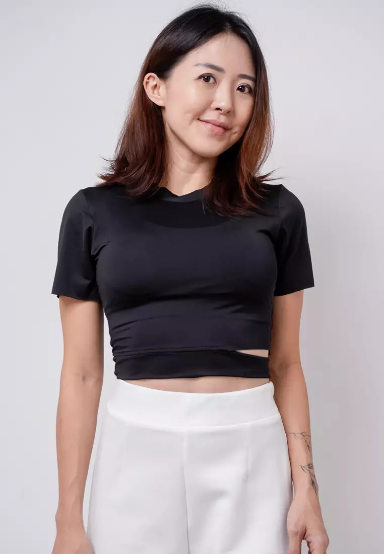 LTE17 TDLA CRWH Crop Short Sleeve Kaos Casual Wanita Polos Black