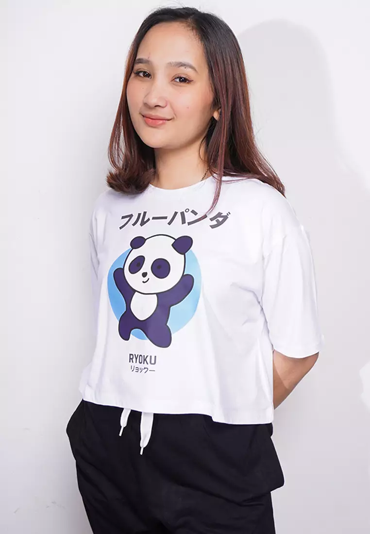 LTE63 crop top oversize OLC anime kartun tulisan jepang putih