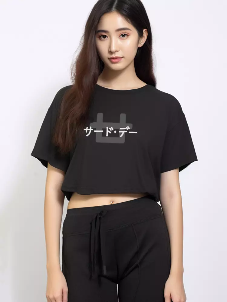 LTE67 olc crop top oversize hitam logo back katakana front hitam