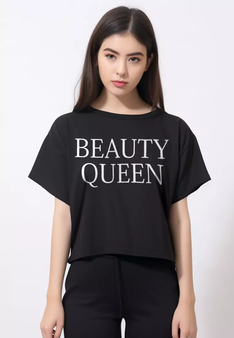 LTE70 kaos oversize OLC crop top BEAUTY QUEEN hitam