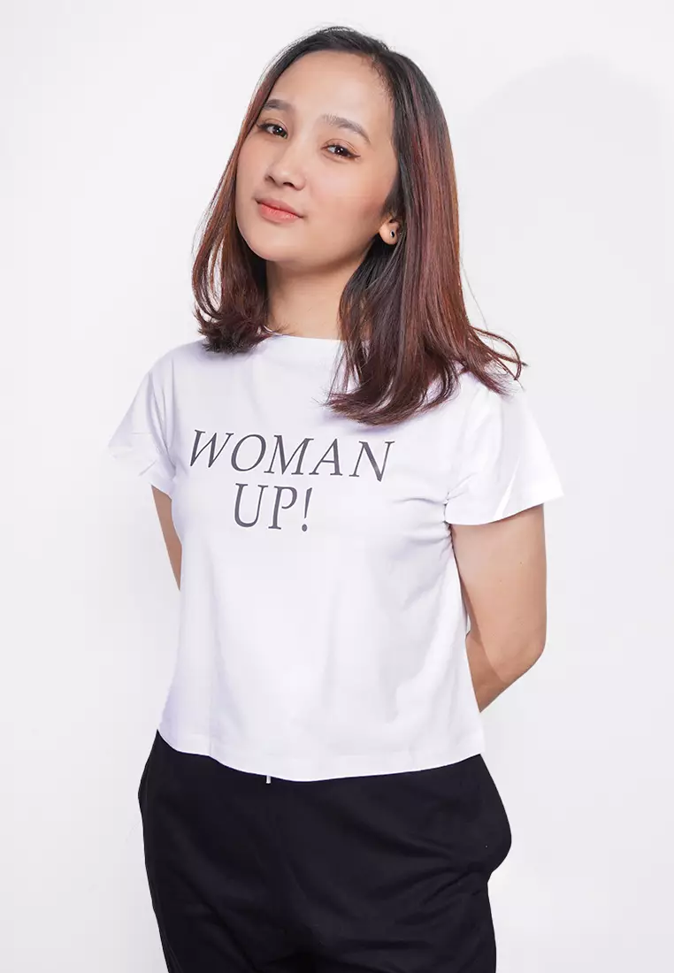 LTE78 crop oversize tulisan WOMAN UP RCP putih
