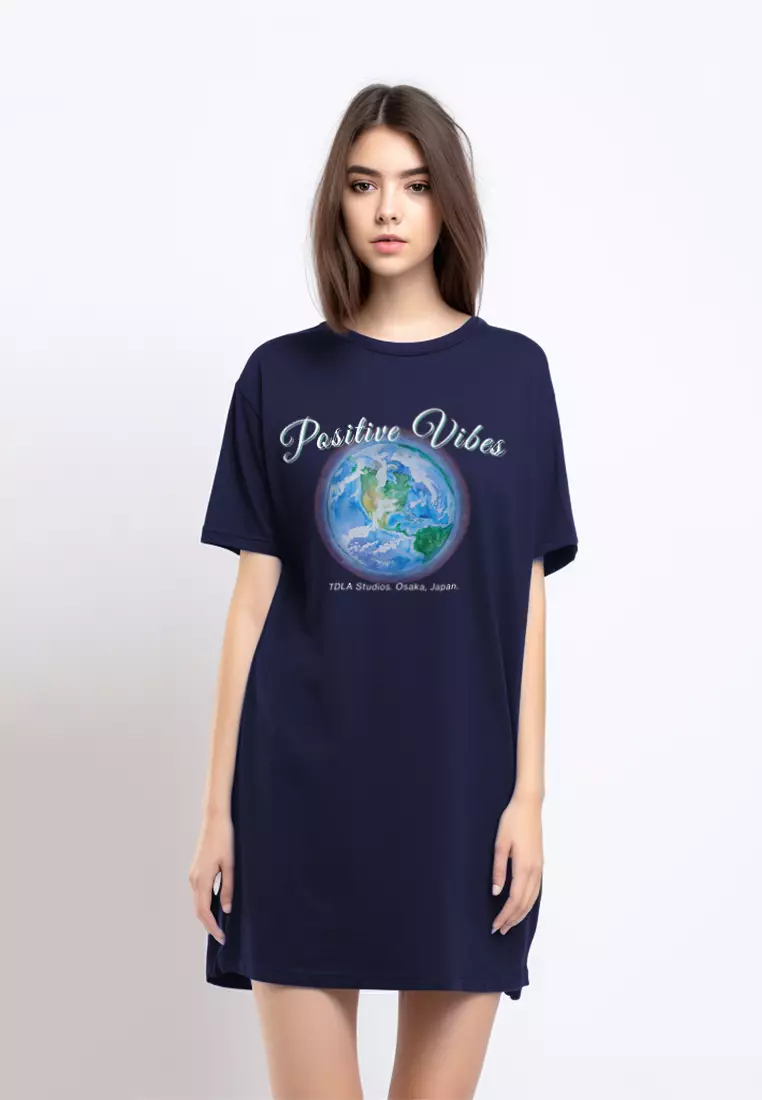 LTE81 ld kaos oversize dress wanita positive vibes earth navy